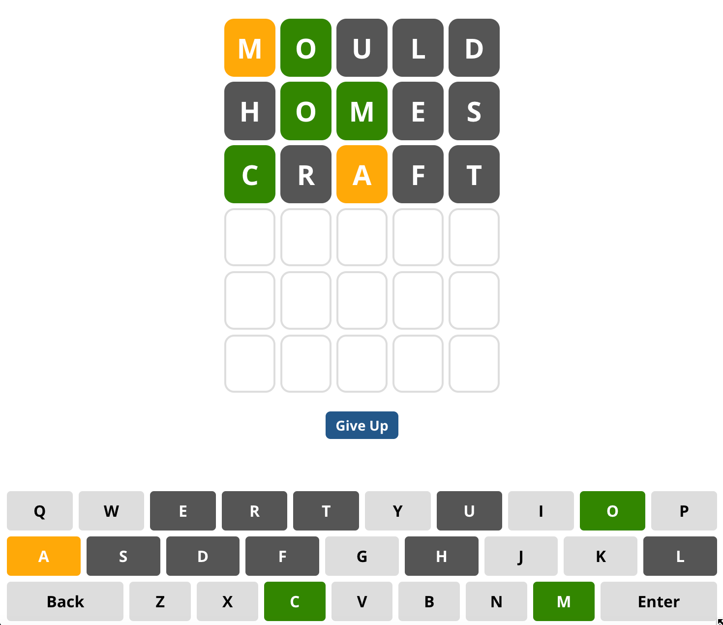 Remember, that if a word seems too hard, you can always give up, although that's not encouraged as it takes away the thrill of the game!